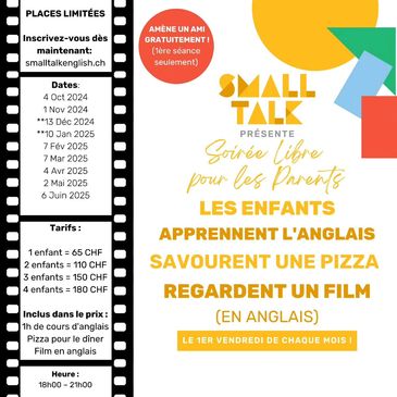 Join us for Movie & Pizza Night on the first Friday of every month! Children learn key movie-related vocabulary through games, enjoy pizza, and watch a fun film—all while practising their English skills.